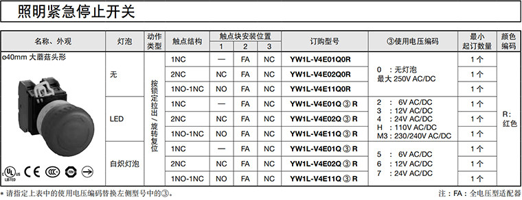 和泉YW1B-V4E01R急停开关按钮旋转复位蘑菇头